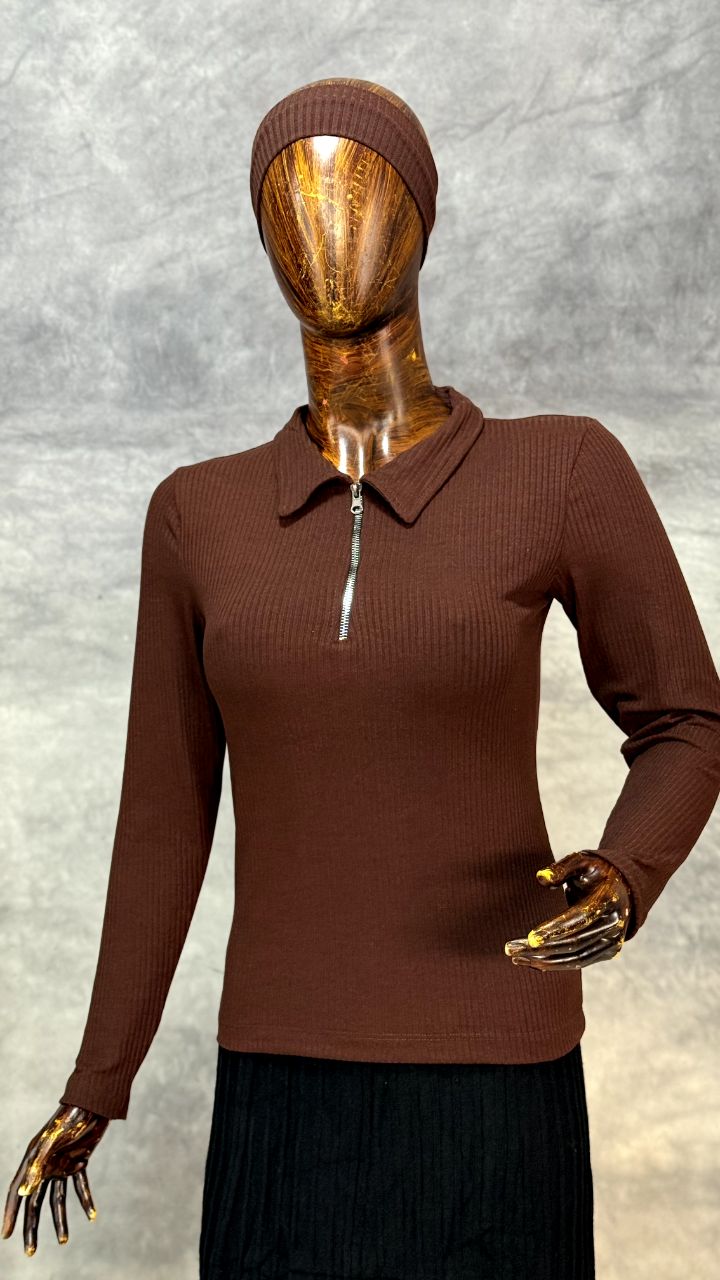 بلوز يقه شکاری نیم زیپ (عمده)