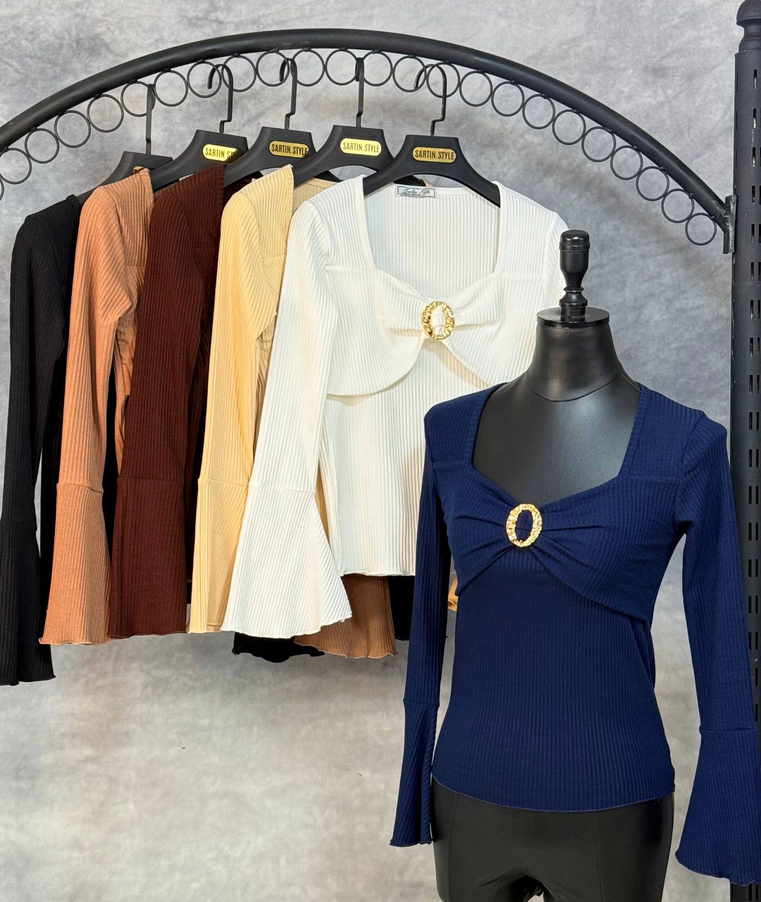بلوز یقه سگک خور آستین کلوش(عمده)